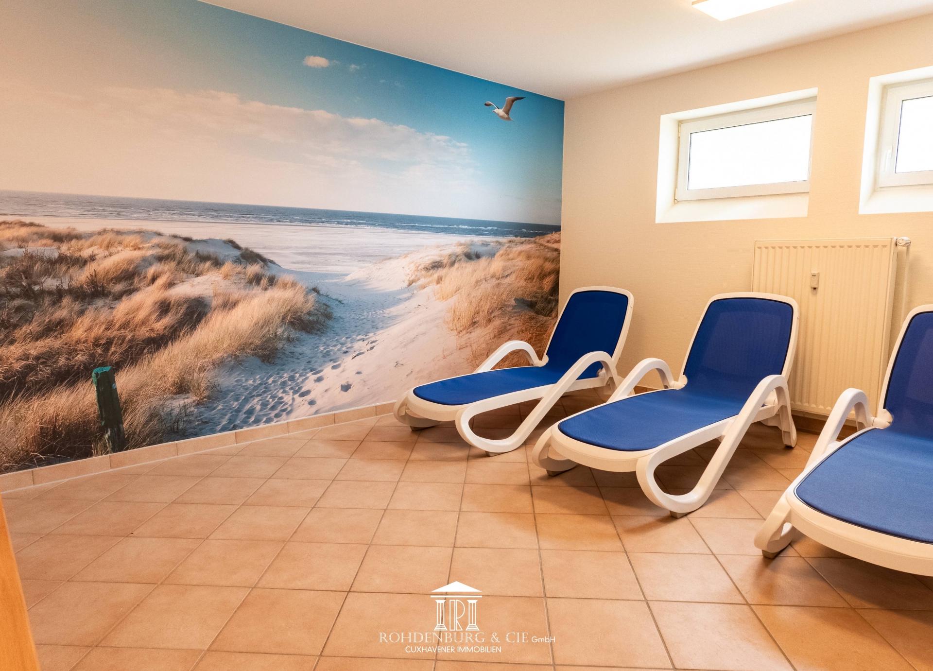 Das Haus Knechtsand bietet seinen Bewohnern und Gästen ein vielseitiges Angebot an Freizeit- und Wellnessmöglichkeiten. Im Wellnessbereich erwartet Sie ein Hallenbad mit separaten Umkleidekabinen und einem großzügigen Duschbereich. Für zusätzliche Entspannung können Sie gegen eine kleine Gebühr von 2 Euro die finnische Sauna oder das Dampfbad nutzen. Die gepflegten Außenanlagen mit Grünflächen und Sitzmöglichkeiten laden zum Verweilen und Entspannen ein. Praktische Gemeinschaftseinrichtungen wie eine Waschküche, ein Trockenraum, ein Fahrradkeller sowie ein Tischtennisraum runden das Angebot ab und sorgen für zusätzlichen Komfort während Ihres Aufenthalts.