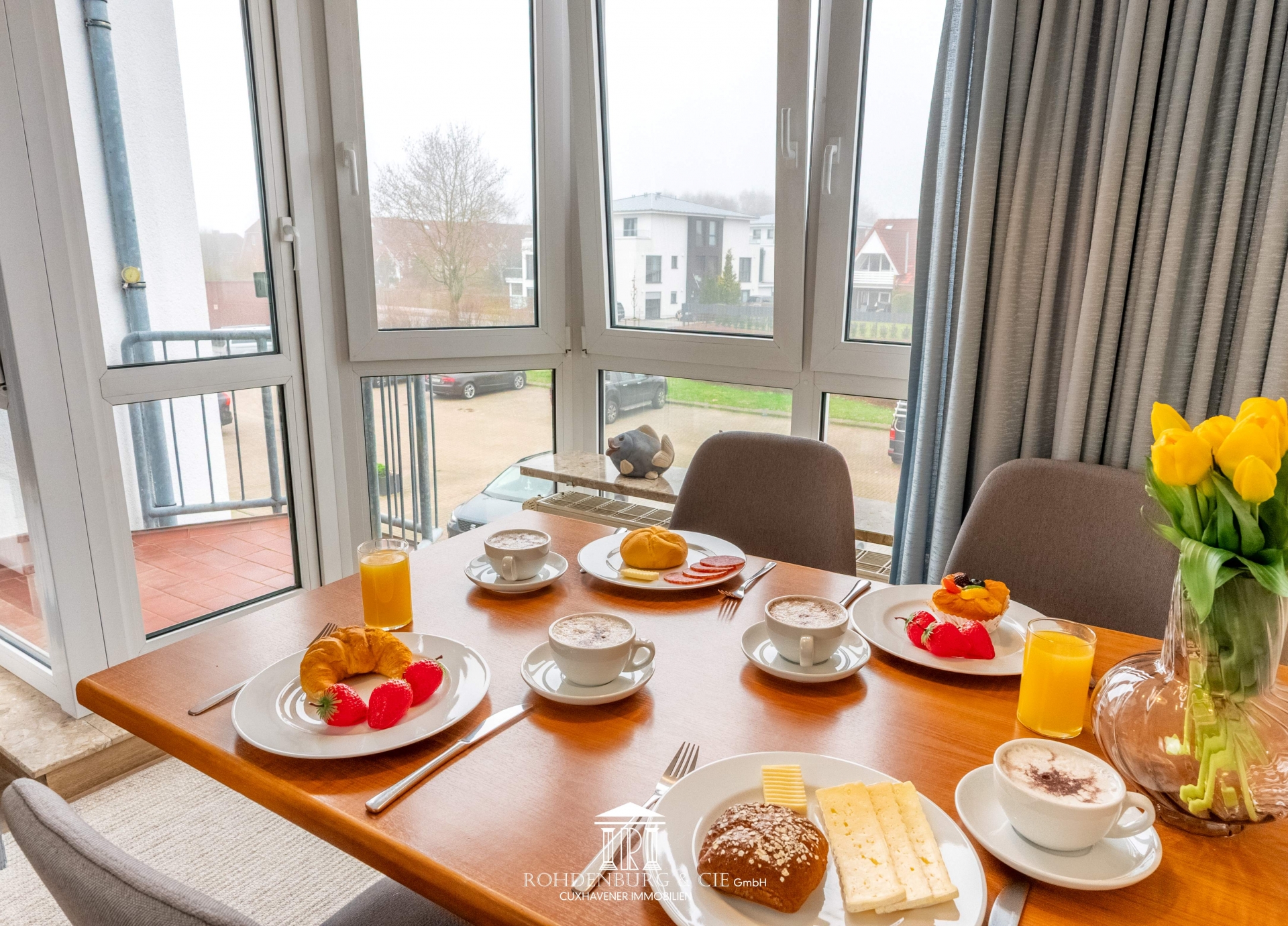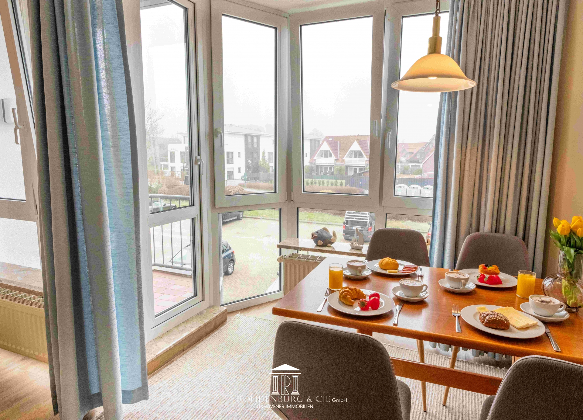Die Wohnung wird komplett möbliert verkauft, inklusive der modernen Einbauküche. Die Einrichtung ist gepflegt, eher schlicht gehalten und in einem leicht maritimen Stil gestaltet, sodass ein gemütliches und einladendes Ambiente entsteht, in dem Sie sich sofort wohlfühlen werden.