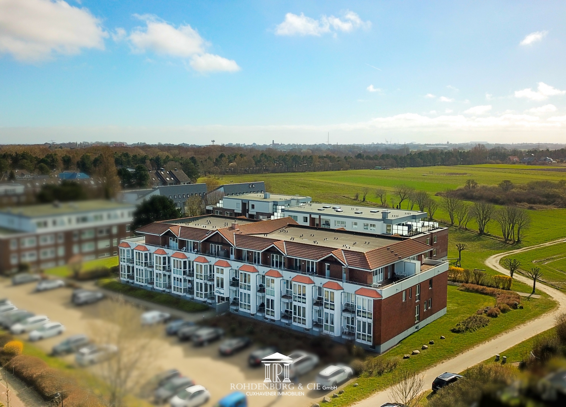 Die gepflegte und Appartementanlage Knechtsand befindet sich in ruhiger und strandnaher Lage im Kurteil Duhnen, dem wohl bekanntesten und beliebtesten Ortsteil von Cuxhaven. Eingebettet in ein familienfreundliches Wohngebiet und unmittelbar angrenzend an weitläufige Wiesen sowie das Naturschutzgebiet der Duhner Heide, bietet die Lage eine besonders attraktive Kombination aus Natur, Ruhe und maritimer Atmosphäre. Von hier aus erreichen Sie in wenigen Minuten sowohl den langen Sandstrand als auch die Duhner Promenade und das lebendige Kurzentrum mit zahlreichen Restaurants, Cafés und Einkaufsmöglichkeiten. Die Umgebung lädt zu ausgedehnten Strandspaziergängen, Wattwanderungen im UNESCO-Weltnaturerbe Wattenmeer sowie zu entspannten Tagen am Meer ein. Ebenso bieten sich entlang der Küste und durch die nahegelegene Küstenheide abwechslungsreiche Fahrradtouren an, bei denen sich die einzigartige Natur- und Küstenlandschaft besonders gut entdecken lässt. Durch die attraktive Lage zwischen Natur, Strand und Kurzentrum eignet sich die Wohnung sowohl hervorragend als privater Rückzugsort und Zweitwohnsitz an der Nordsee als auch als interessante Möglichkeit zur Vermietung an Feriengäste. Cuxhaven ist die drittgrößte Stadt an der niedersächsischen Nordseeküste und zugleich das größte deutsche Seeheilbad. Die Stadt liegt direkt an der Mündung der Elbe in die Nordsee und verfügt über eine gute Anbindung an die Metropolregionen Bremen (ca. 100 km) und Hamburg (ca. 130 km), die sowohl mit der Bahn als auch mit dem Auto gut erreichbar sind. Während Cuxhaven über die Autobahn mit Bremen verbunden ist, führt eine gut ausgebaute Bundesstraße in Richtung Hamburg.