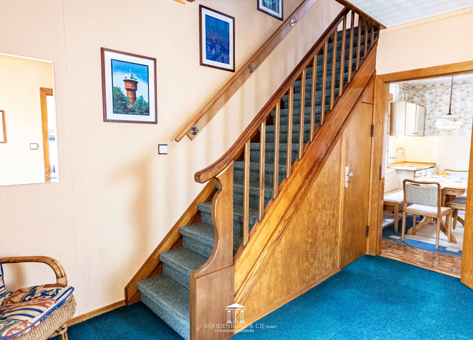 Das Einfamilienhaus befindet sich in einem besonders reizvollen Teil Cuxhavens, eingebettet in ein ruhiges und gut erschlossenes Wohn- und Feriengebiet unweit des Deichs. Die Lage, ganz im westlichen Stadtbereich, zeichnet sich durch ihre unmittelbare Nähe zur Nordsee aus und bietet damit ein maritimes Ambiente, das Urlauber und Einheimische gleichermaßen anspricht. Sie zählt damit zu den beliebtesten Wohnlagen der Stadt. Nur wenige Gehminuten entfernt erstrecken sich der feinsandige Strand, ein modernes Freizeitbad, der grüne Kurpark sowie eine lebendige Promenade mit zahlreichen Cafés, Restaurants und kleinen Geschäften - ideale Voraussetzungen für Erholung und Freizeitvergnügen direkt vor der Haustür. Der Stadtteil Döse, in dem das Haus liegt, bildet den nördlichsten Punkt Niedersachsens und ist bekannt für seinen direkten Blick auf die Elbmündung. Ein besonderes Highlight ist das bekannte Seezeichen, das die Grenze zwischen Elbe und Nordsee markiert und als Wahrzeichen der Stadt gilt. Von hier aus verläuft westlich ein weitläufiger Sandstrand mit lebhafter Promenade, die sich harmonisch in einen Spazier- und Radweg über die beliebten Küstenorte bis nach Sahlenburg fortsetzt. In östlicher Richtung führt der Weg entlang der Grimmershörner Bucht bis hin zum Hafengebiet. Auch hier laden zahlreiche gastronomische Angebote und Ausblickspunkte zum Genießen und Verweilen ein. Die hervorragende Anbindung an den öffentlichen Nahverkehr rundet die attraktive Lage ab und ermöglicht eine bequeme Erreichbarkeit des Stadtzentrums sowie aller umliegenden Sehenswürdigkeiten. Cuxhaven ist die drittgrößte Stadt an der niedersächsischen Nordseeküste sowie das größte deutsche Seeheilbad und liegt direkt an der Mündung der Elbe in die Nordsee. Die nächstgelegenen Metropolregionen Bremen (ca. 100km) und Hamburg (ca. 130km) sind von Cuxhaven aus problemlos mit der Bahn zu erreichen. Eine Autobahn verbindet Cuxhaven mit Bremen, die Anbindung nach Hamburg erfolgt über eine Bundesstraße.