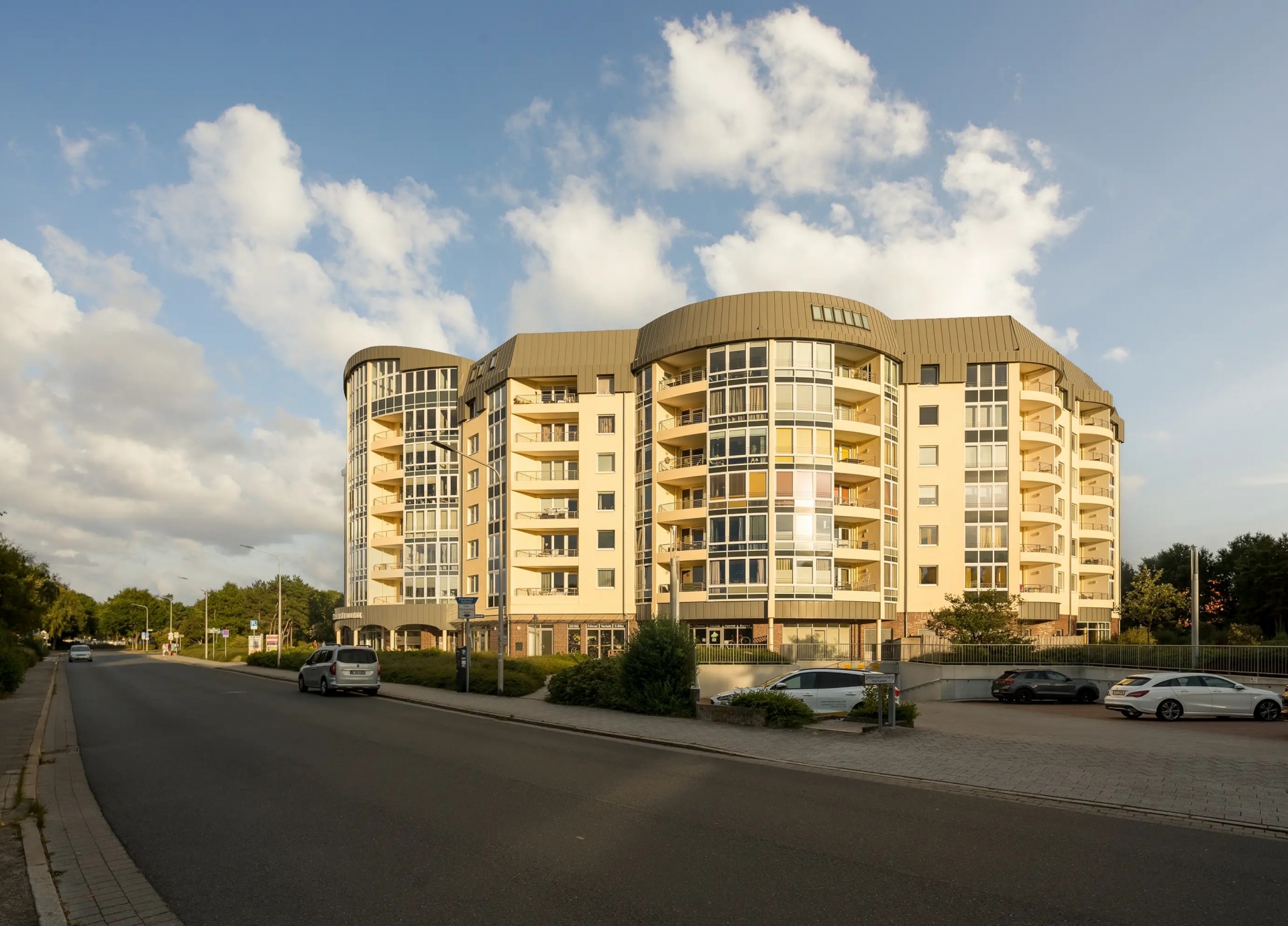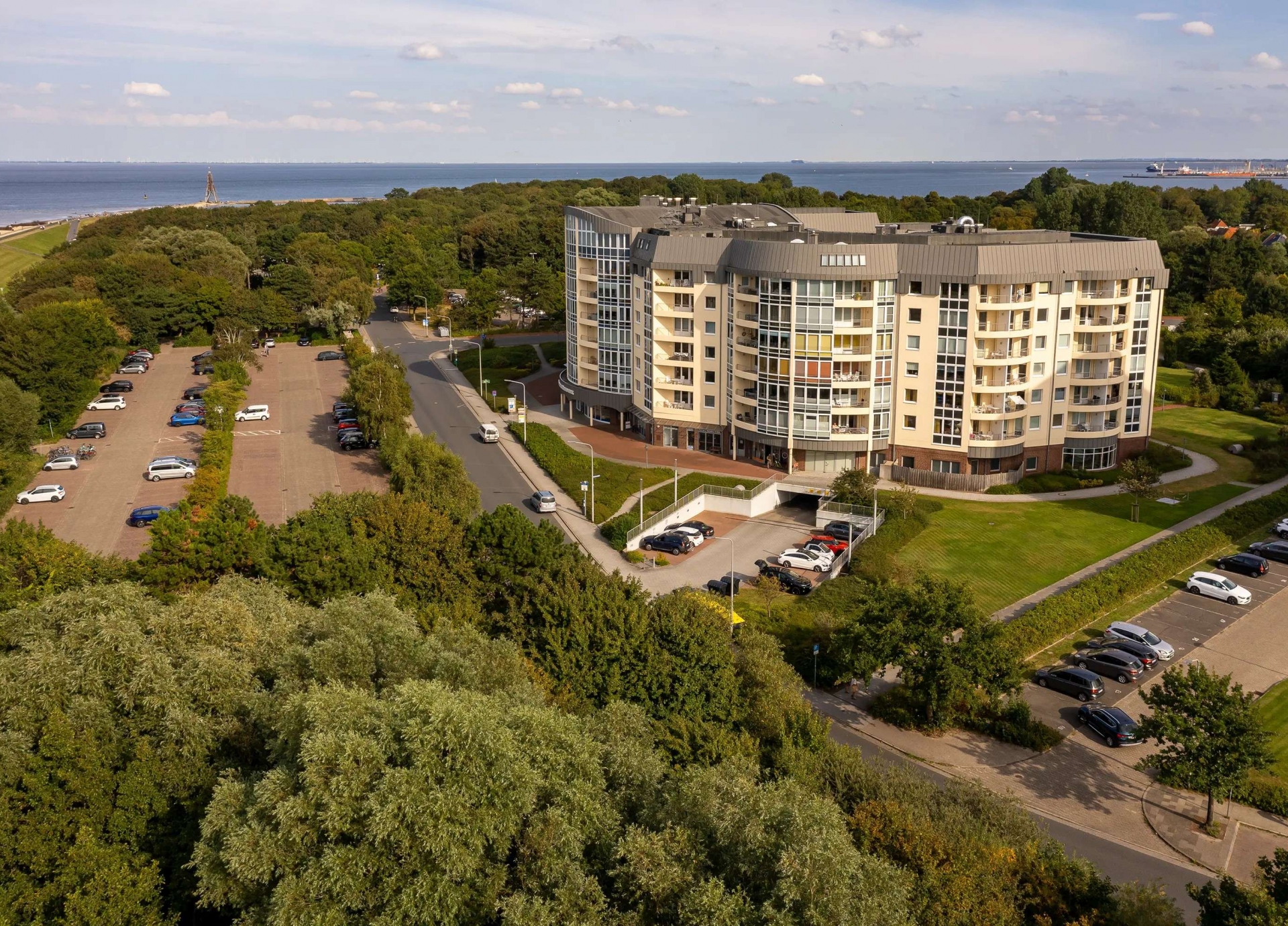 Das Gebäude liegt im Stadtteil Döse, unweit des Strandes und der Kugelbake, einem jahrhundertealten Seezeichen, welches den Übergang der Elbe in die Nordsee markiert. Das Besondere daran? Die weltgrößten Containerschiffe und Kreuzfahrtschiffe passieren dieses Wahrzeichen nur einen Steinwurf entfernt. Für die Eigentümer der Penthousewohnung ist es mit einem kurzen Spaziergang erreichbar. Unweit von der Kugelbake liegen die Grimmershörnbucht und der Kurpark mit der Kugelbakehalle, in der ganzjährig Kulturveranstaltungen stattfinden. Aber nicht nur diese Orte sind schnell erreichbar. Vor dem Haus befindet sich ein feiner Sandstrand, der sich kilometerweit von der Haustür über Duhnen bis nach Sahlenburg zieht. Auch in der Kurpark Residenz selbst gibt es umfassende Angebote, die den Alltag bereichern: Von Swimmingpool bis hin zur E-Bike-Ladestation und Fitnessstudio findet sich dort alles, was zum Wohlbefinden beiträgt.