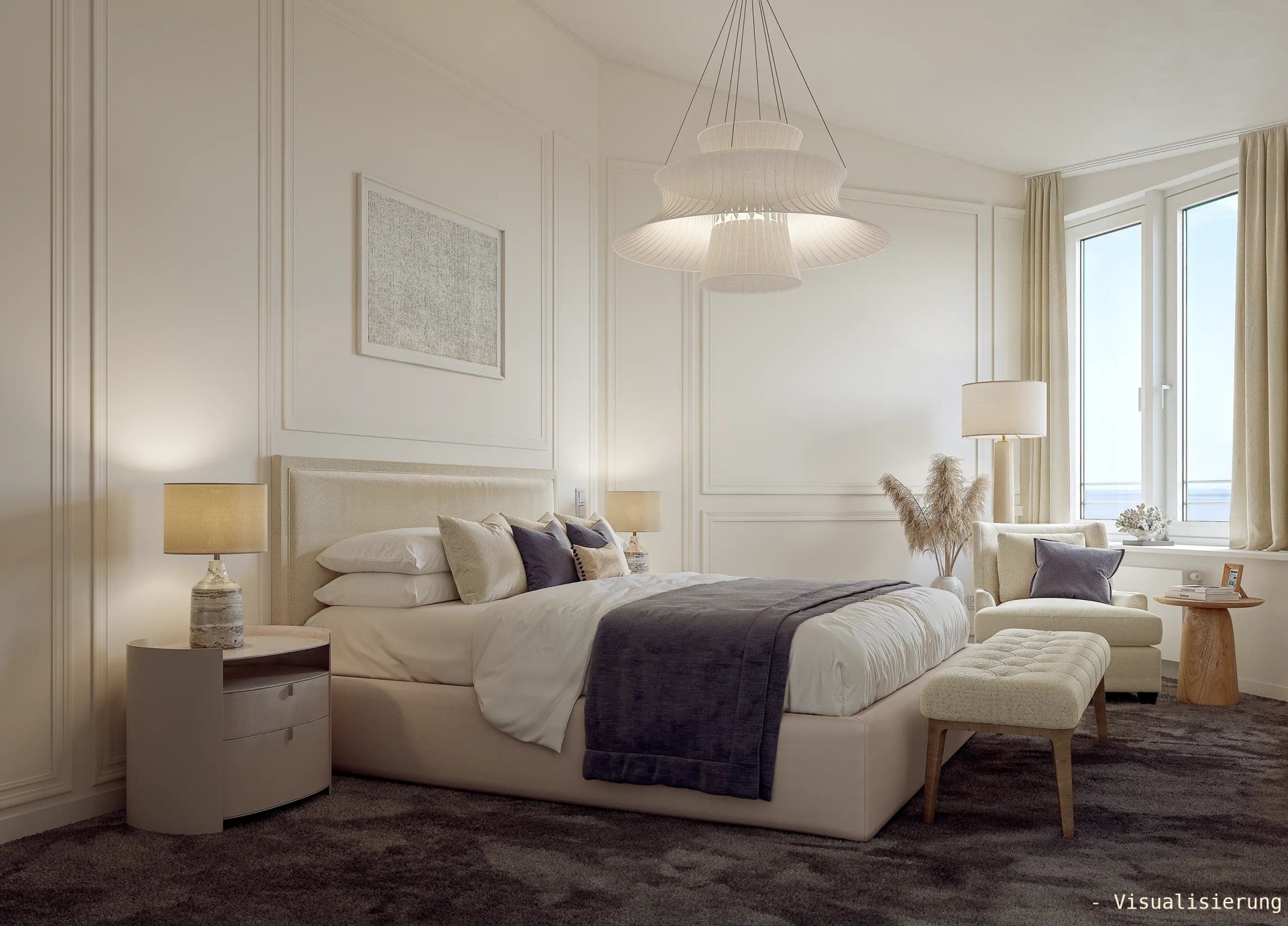 Die Wohnung bietet eine luxuriöse Ausstattung, die den hohen Anspruch unterstreicht: - Schlafzimmer mit begehbarem Kleiderschrank und En Suite Bad - Private Klafs-Sauna im Wert von 32.000 EUR inklusive - Therapeutische Wellfit-Regendusche - Hochwertige Materialien: wie handverlesenes Eichenparkett + samtweicher Veloursteppich - Raumbreites Panoramafenster im Wohnbereich Schon beim Betreten des großzügigen Empfangsbereichs offenbart sich die außergewöhnliche Architektur dieses 173 m² großen Penthouses. Das Herzstück bildet der ca.80 m² große Wohnbereich, ergänzt mit 2 Schlafzimmern und 2 Badezimmern, die funktional angeordnet, aber außergewöhnlich eingerichtet sind: - Übergroße Bodenfliesen von 1,20 x 1,20m Größe - Monumentale Wandfliesen mit Abmessungen von 2,70 x 1,20m - Armaturen und Badobjekte namhafter Hersteller - Eine Sauna mit Sternenhimmel und musikalischer Untermalung Ein ganz besonderer Bonus erwartet diejenigen, die sich zum Kauf des Penthouses entscheiden: Für 5 Jahre ab Kauf steht dem Besitzer des Penthouses in der Sommersaison ein Strandkorb zur Verfügung: 150 Meter von der Haustür entfernt. Ohne Mehrkosten, ohne Aufwand. Aber mit der Gewissheit, am Strand immer einen Platz in der ersten Reihe zu haben. Erfahren Sie mehr zum Objekt auf unserer Internetseite: www.penthousecuxhaven.de